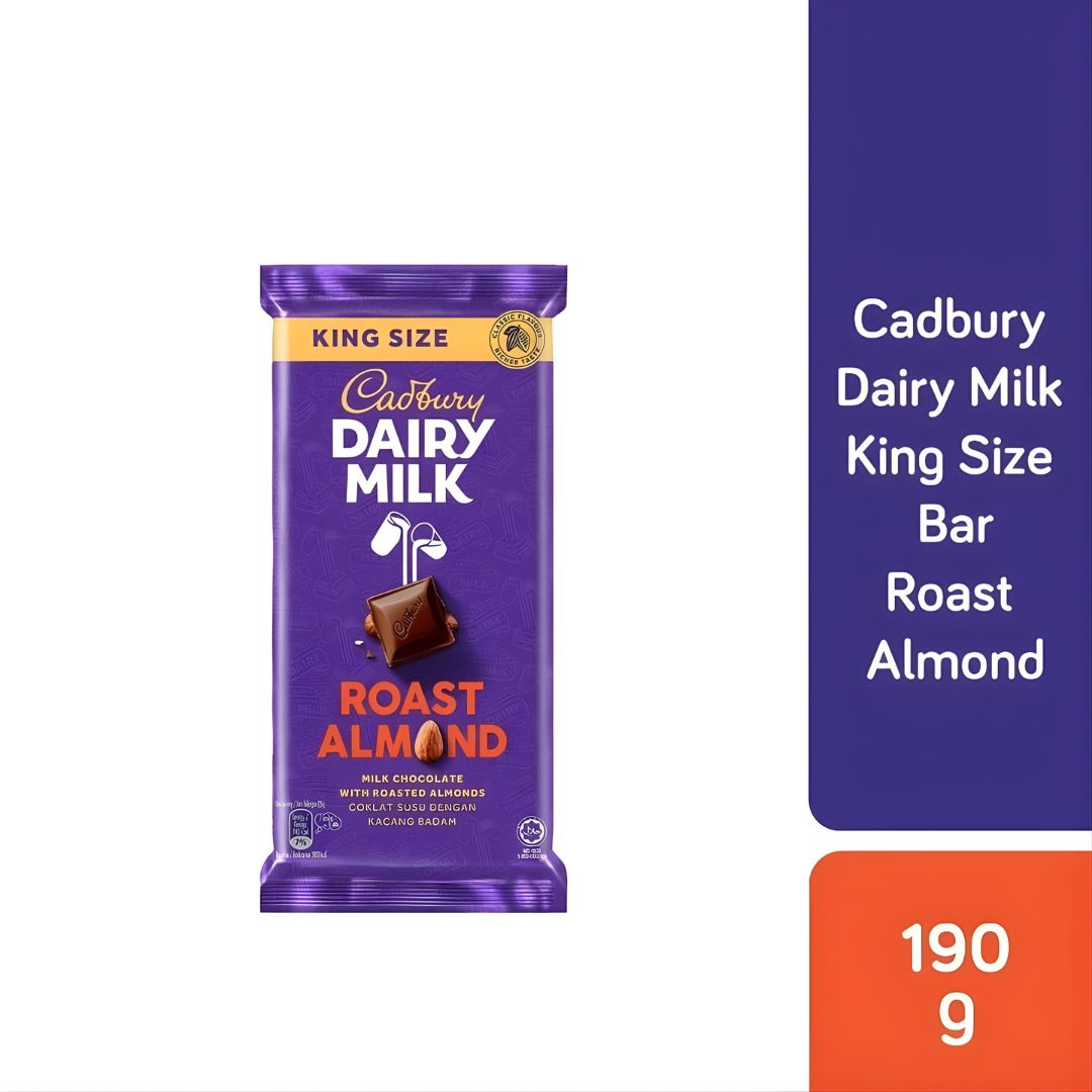 Experience the perfect balance of rich Cadbury Dairy Milk chocolate and crunchy roasted almonds in this indulgent King Size XL bar (190g). Every bite delivers smooth, creamy milk chocolate paired with the nutty crunch of carefully selected almonds, making it a favourite for true chocolate lovers.