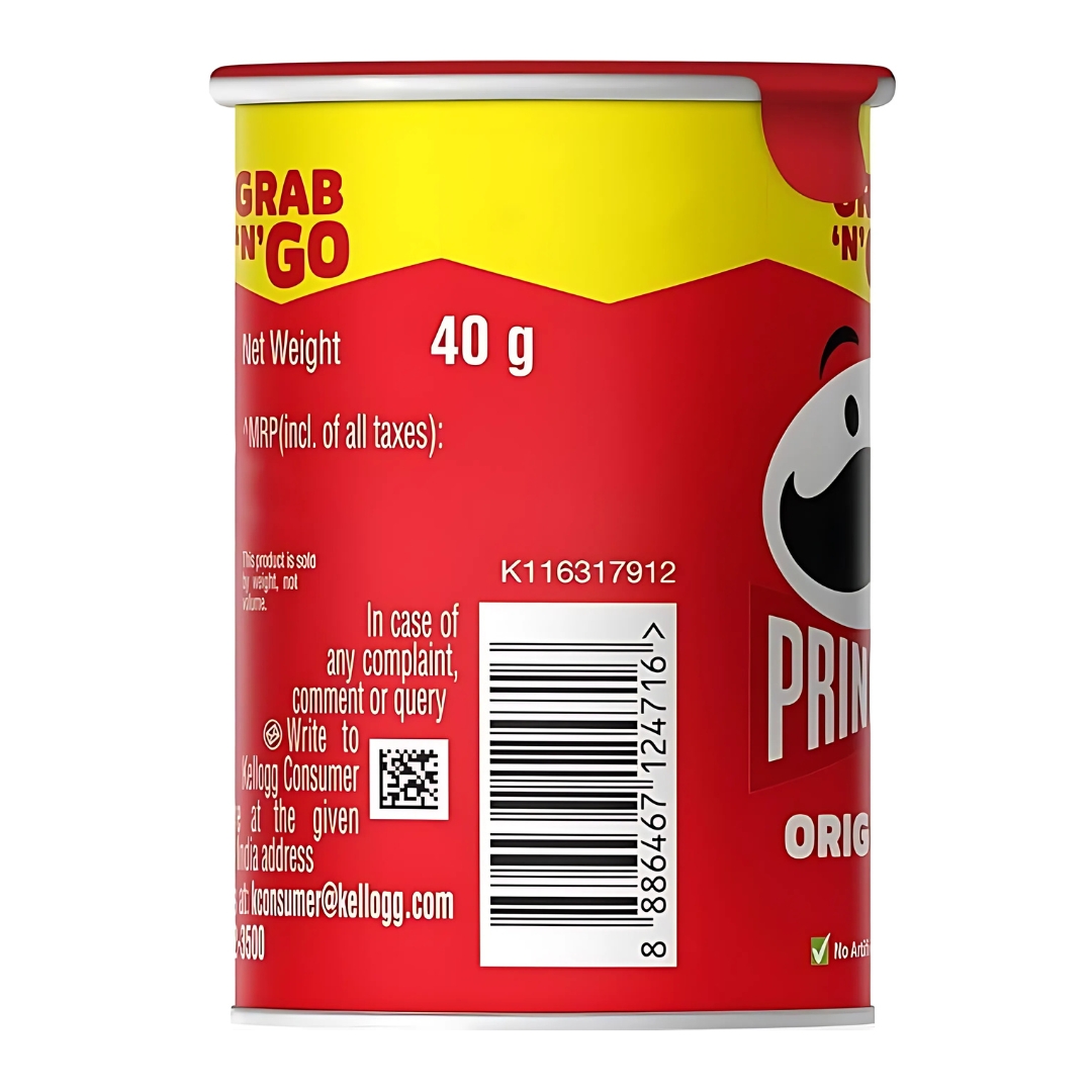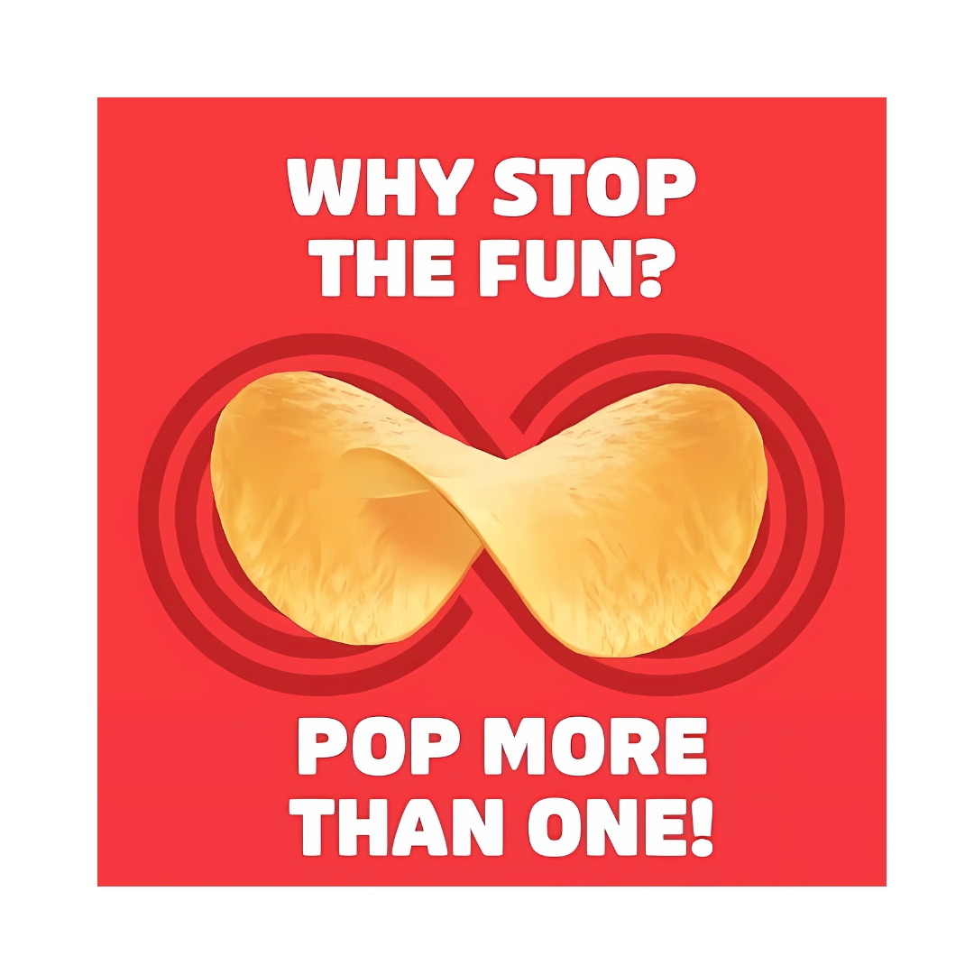 Snack anytime with Pringles Original 40g. The classic lightly salted potato crisps in a convenient mini can. Perfectly stacked and crunchy, this small pack is ideal for on-the-go snacking, lunchboxes, or sharing a quick treat.