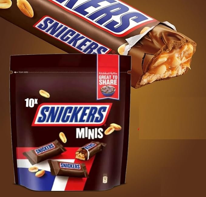 Satisfy your chocolate cravings with Snickers Mini Bars Pouch 227g. Bite-sized versions of the classic Snickers bar feature a delicious combination of nougat, caramel, and roasted peanuts coated in smooth milk chocolate. Perfect for sharing, gifting, or enjoying a quick energy boost anytime